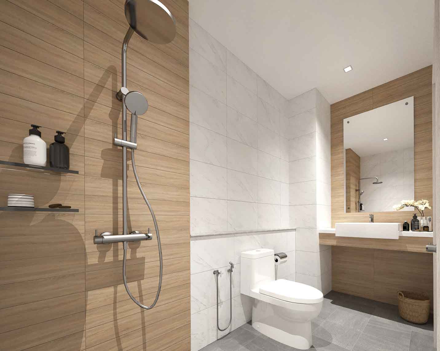 ด้วยแบบบ้านที่ออกแบบมาสำหรับทั้งอยู่อาศัยและประกอบธุรกิจ บ้านมี 3 ห้องนอน 3 ห้องน้ำ ทุกหลังมีฟังค์ชั่น Double Volume Space หรือการดีไซน์พื้นที่ให้มีเพดานสูง เป็นพิเศษ สร้างความรู้สึกโอ่อ่า พื้นที่โปร่งโล่งทำให้บรรยากาศสบาย ถ่ายเท สำหรับใช้รับแขก หรือลูกค้าได้เป็นอย่างดี มีพื้นที่ใช้สอย ประมาณ 220 ตร.ม